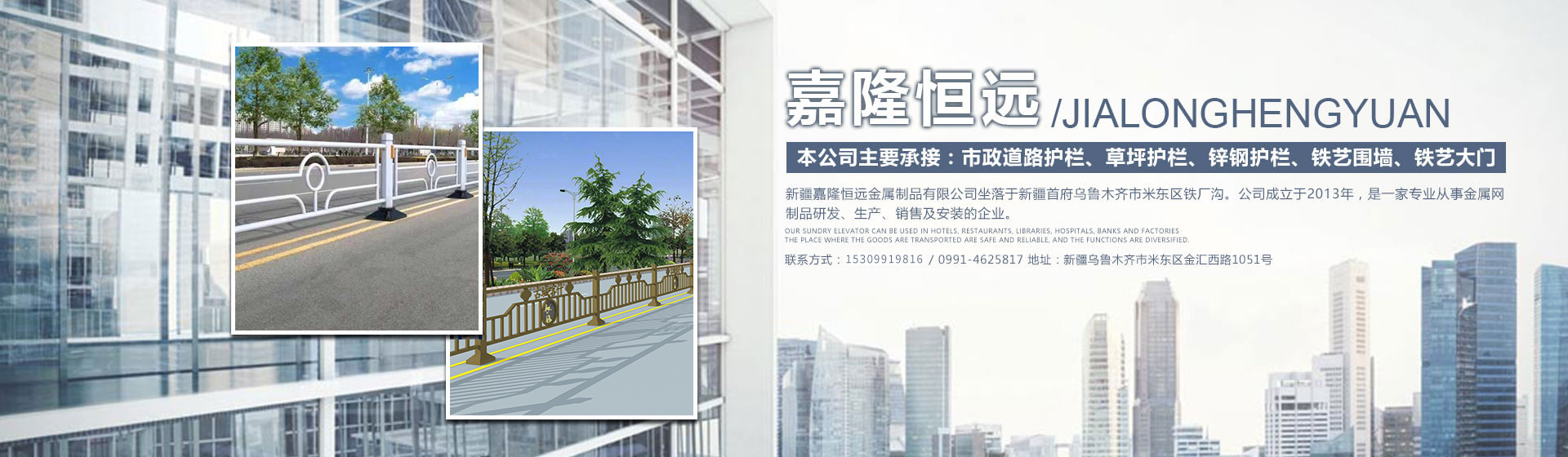新疆嘉隆恒遠(yuǎn)金屬制品有限公司坐落于新疆首府烏魯木齊市米東區(qū)鐵廠溝。公司成立于2013年,是一家專業(yè)從事金屬網(wǎng)制品研發(fā)、生產(chǎn)、銷售及安裝的企業(yè)。 本公司主要承接 市政道路護(hù)欄、草坪護(hù)欄、鋅鋼護(hù)欄、鐵藝圍墻、鐵藝大門。 公司購進(jìn)一批新的生產(chǎn)設(shè)備,生產(chǎn)能力、廠區(qū)環(huán)境得到大步提升、我公司將以全新的面貌、以更優(yōu)質(zhì)的產(chǎn)品、更高的效力、為你提供更全面的服務(wù)。 公司承諾將以齊全的品種、優(yōu)質(zhì)的產(chǎn)品、良好的服務(wù)、超值的價位竭誠為廣大新老客戶服務(wù)。 隨著西部大開發(fā)的加快,我公司將依托新疆有利的資源,打造出新疆生產(chǎn)規(guī)模大、品種全的生產(chǎn)基地,迎接更美好、更輝煌的明天。 歡迎來電咨詢,實地考察,一次合作,終身是友。